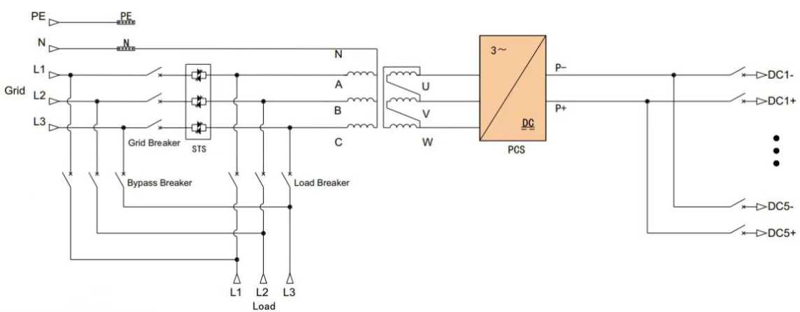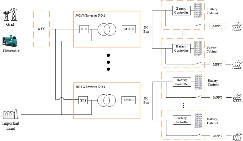 1. Оптерећења која прелазе 500 кВ, препоручује се употреба инвертера за складиштење енергије са једном јединицом од 500 кВ великог капацитета, који може да подржи до четири сета паралелних веза, постижући укупну излазну снагу од 2 МВ;