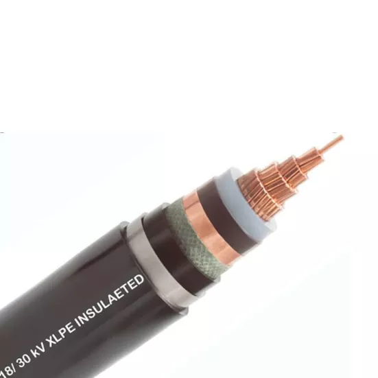 Уплетени кружни збијени бакарни или алуминијумски проводник са полупроводним слојем као екраном проводника, изолованим од КСЛПЕ и полупроводним слојем као неметални изолациони екран, бакарном траком или жицом као металним изолационим екраном. ПВЦ облога. Задовољава ИЕЦ 60502.